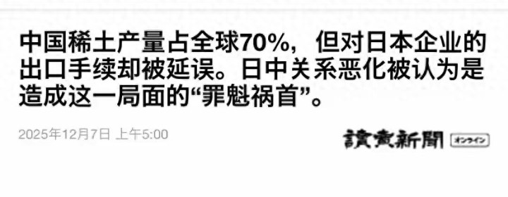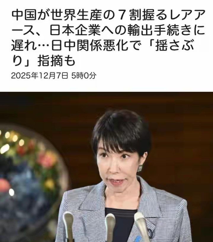 12月7日,日本主流媒体刊出分析,指出高市早苗涉台言论后,日本稀土对华出口申请出现不寻常延迟。这种变化,在敏感时期格外引人关注。日本企业正在经历核查和审批流程变慢,有关方面还在观望,不敢肯定延迟背后是否蕴含政治动机。不过日本舆论基本认定,这和中国试图通过稀土向日本施压紧密相连,目标直指高市相关涉台发声。