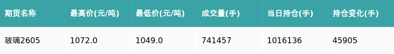 南财智讯3月25日电,盘后期货数据显示,郑州商品交易所的玻璃主力合约收跌0.94%,收盘报1057.0元/吨,日内资金流入2.17亿元。其他相关指标见下表: